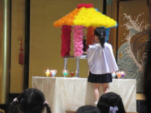 アルバム アルバム 花まつり(4月8日) 2025年5月9日 4月8日は、花まつり お釈迦様のお誕生日でした。きりん組のお友だちが代表で鹿児島別院にお祝いのお参りに行きました。別院で行う最初の園児参拝です。とても厳かな雰囲気が伝わってきますね。お参りの後は、アーケードの中でパレード。みんなよく頑張りました。