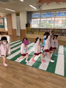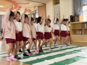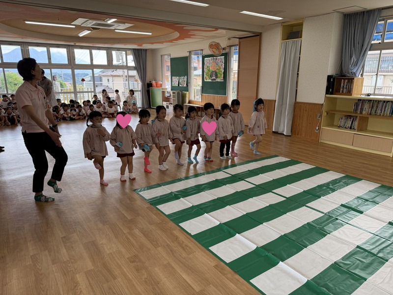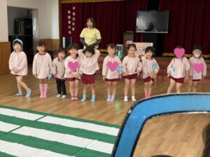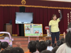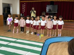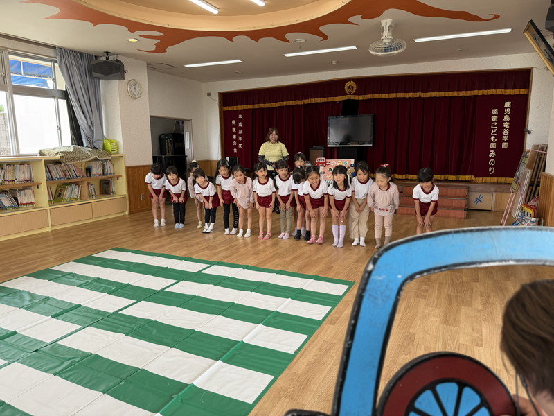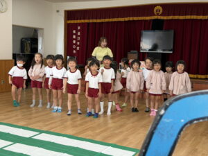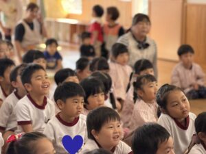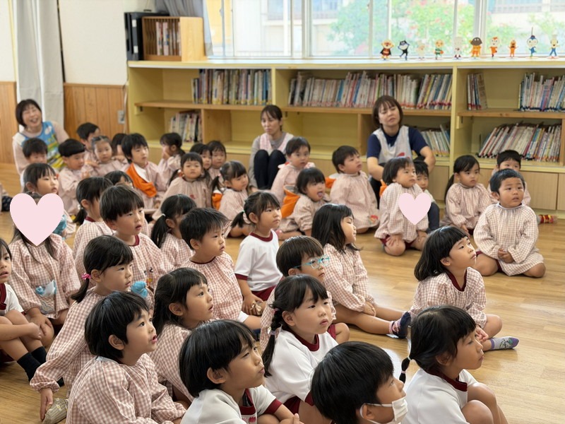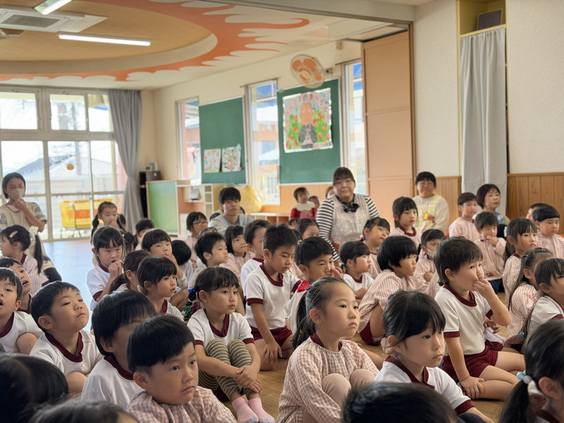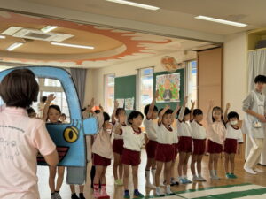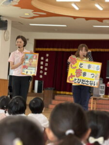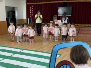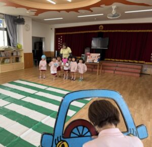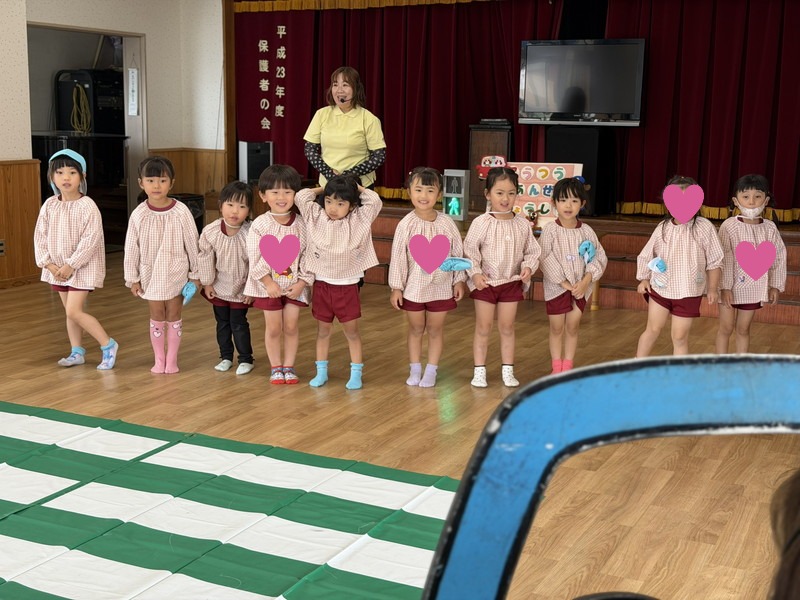 アルバム アルバム ☆交通安全教室☆彡 2025年11月4日 10月分30日 交通安全教室がありました。鹿児島市から指導員の方が来てくださり、交通ルールについてみんなで学びました。指導員の方と一緒に来てくれた、こうちゃんと、いちごちゃん(腹話術)に会えて、みんな とても嬉しそうでした。交通ルールや横断歩道の渡り方、遊ぶ時のお約束なども、一緒に考えて覚えました。真剣に話を聞くみんなの眼差しが、とても素敵ですね!!