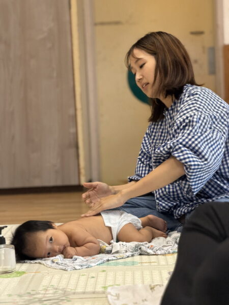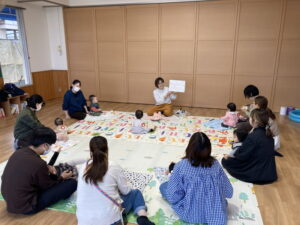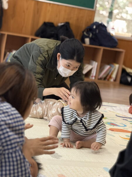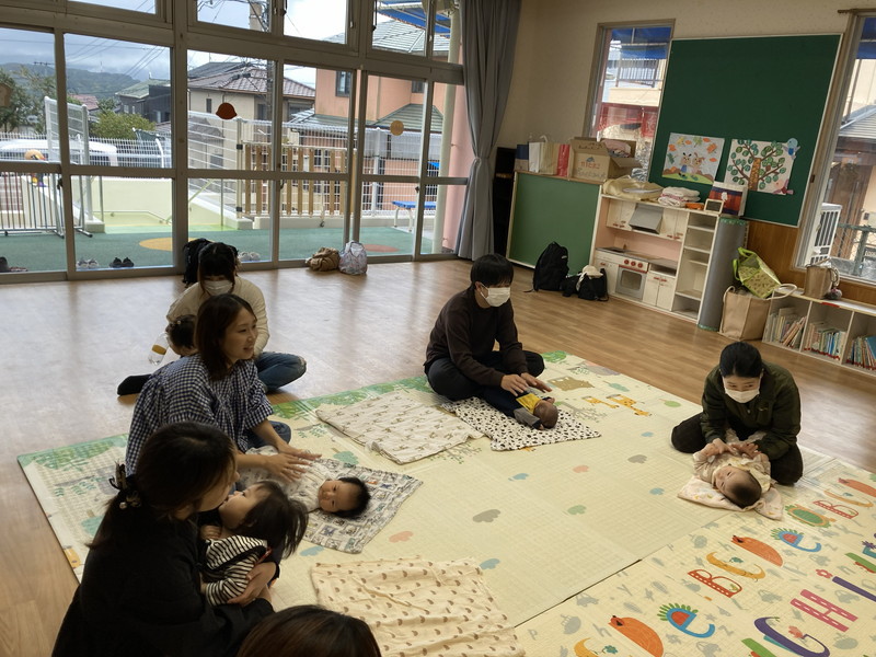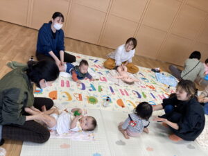アルバム みのりちゃんクラブ・ベビークラブ アルバム みのりちゃんクラブ・ベビークラブ みのりベビークラブ☆彡ベビーマッサージ 2026年1月7日 11月13日(木)は、イルカHugの松元えりか先生をお呼びして、ベビーマッサージを実施しました♪ マッサージの効果や親子の関わりの大切さを感じることが出来ました☆彡 教えていただいたマッサージや触れ合いを園内の保育の中で行うと、みんな大喜びで、改めて、触れ合うことを大切にしていきたいと思いました♪