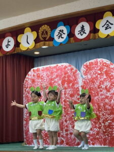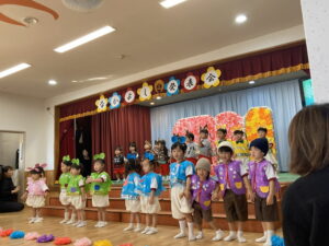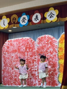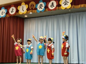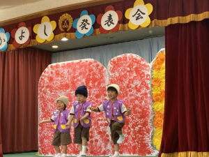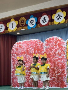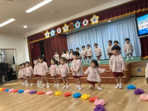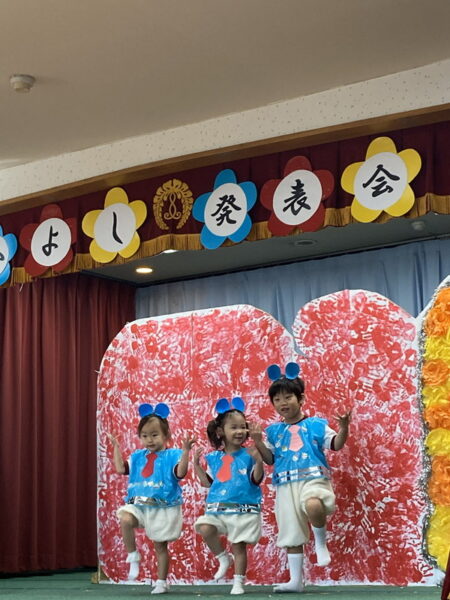 アルバム アルバム なかよし発表会☆彡(ひよこ・こあら) 2026年1月7日 12月7日(日)に【なかよし発表会】を行いました♪ ひよこ組こあら組のお友だちも、大好きな家族の方々に見てもらえてうれしそうな表情がみられました☆彡 【ひよこ組】うた「南の島のハメハメハ大王」 表現遊び「てぶくろ」 【こあら組】遊戯「走れ!」「クロネコのタンゴ」「無責任ヒーロー」「さくらんぼ」 みんなとっても可愛くて、会場のお客さんからもたくさんの拍手をもらうことのできた発表会になりました✨