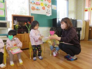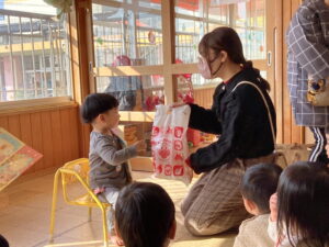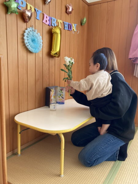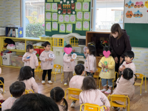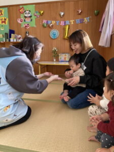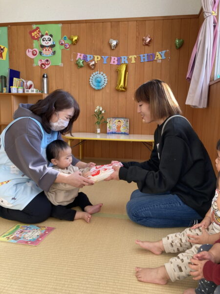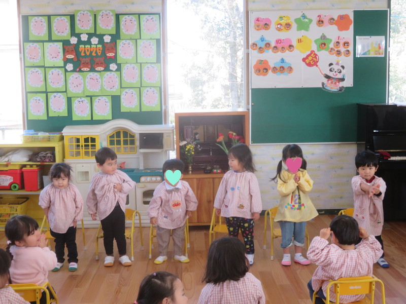 アルバム アルバム 9・10・12・1月生まれ誕生会 part1(もも・さくら・ひよこ組) 2026年2月3日 お誕生会がありました。写真は、もも組・さくら組・ひよこ組の様子です。 お友だちやおうちの方に、お祝いしてもらって嬉しそうですね! もも組さんは、今月のお誕生会で、みんな1歳になりました。いよいよ、お誕生会も、あと1回となります。