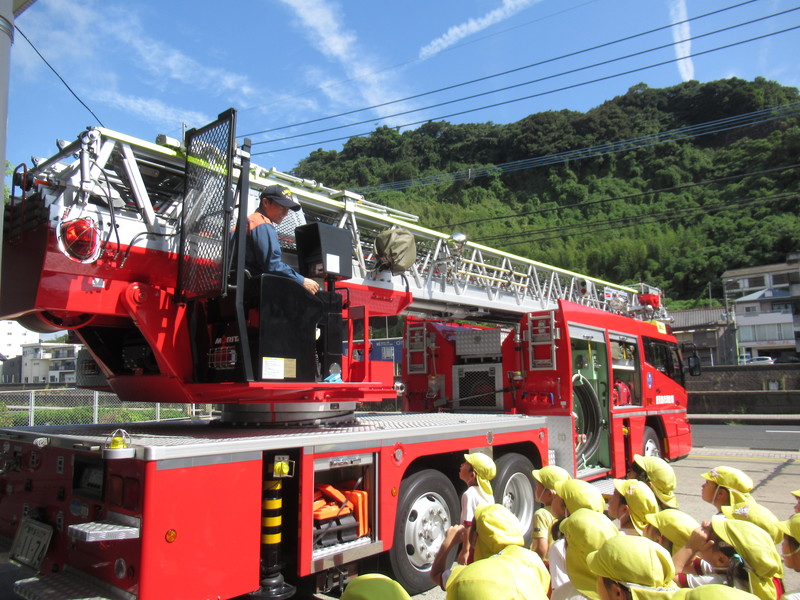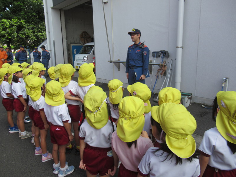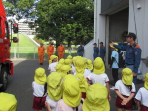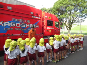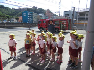 アルバム ☆園外保育(きりん組) 2025年11月1日 9月26日(金)は園外保育で、鹿児島西消防署を訪問してきました。 目の前の消防車や消防隊の服など避難訓練の時には見ることのできないものや話に夢中になることのできた年長組さんでした♪ 消防士になりたいという気持ちになった子も多かったようです。