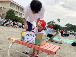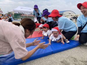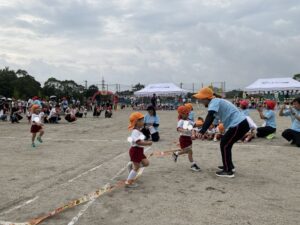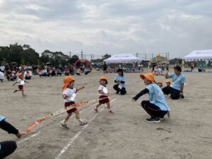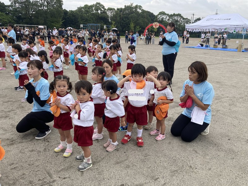 アルバム みのり幼稚園運動会☆彡さくら・もも組 2025年11月1日 10月4日(土)は、みのり幼稚園運動会を開催することができました☆ 心配されていた天候も曇りとなり開催するとこができました♪ これまで練習を頑張ってきた子どもたちの素敵な姿を、おうちの方々に見てもらうことができました☆ 【開会式・かけっこ】 【親子競技☆彡】 はじめての運動会でしたが、一生懸命頑張りました♪