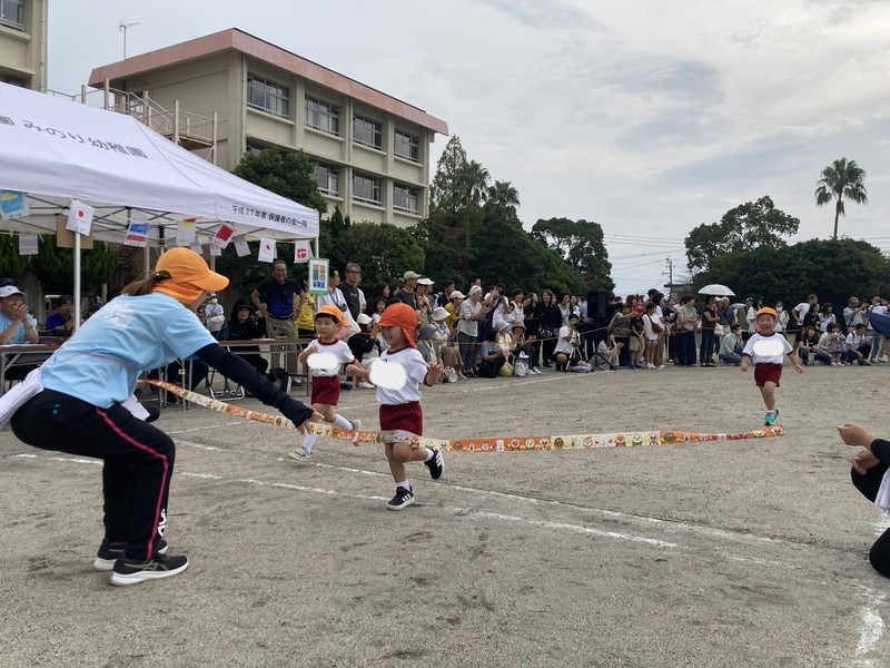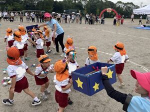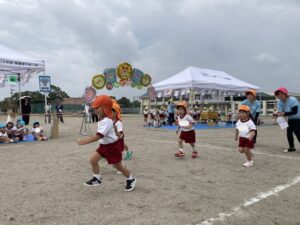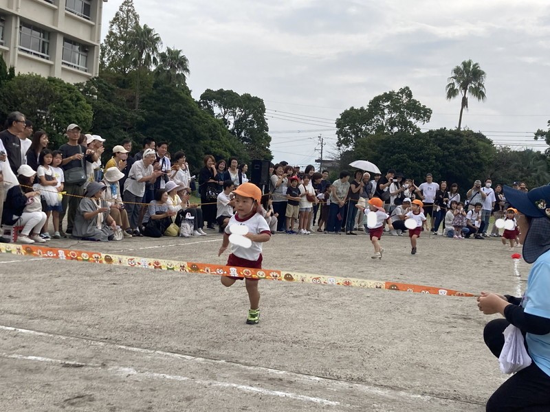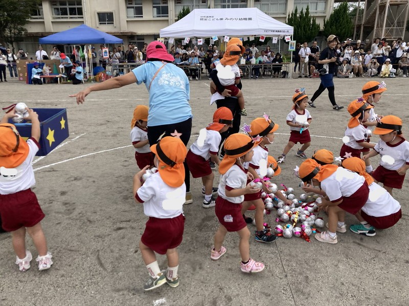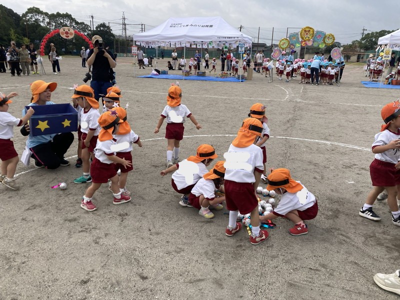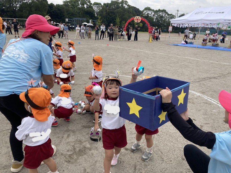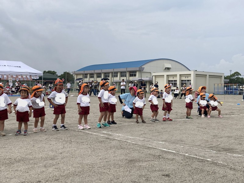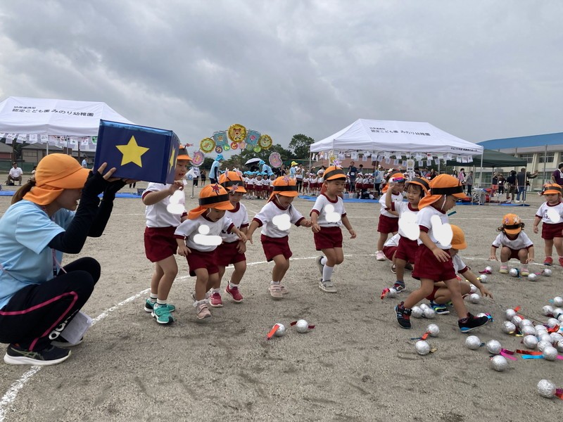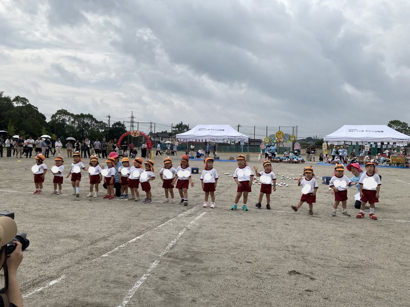 アルバム みのり幼稚園運動会☆彡ひよこ組 2025年11月1日 10月4日(土)は、みのり幼稚園運動会を開催することができました☆ 心配されていた天候も曇りとなり開催するとこができました♪ これまで練習を頑張ってきた子どもたちの素敵な姿を、おうちの方々に見てもらうことができました☆ 【開会式♪】 【かけっこ☆彡】 【弾入れダンス♪】 はじめての運動会のお友だちもたくさんいましたが、頑張って行うことができました☆