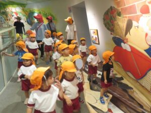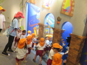 アルバム ☆園外保育(ひよこ組) 2025年11月1日 9月26日(金)に園外保育でメルヘン館に行ってきました♪ 長いスロープにある壁面の絵を見たり、孫悟空に変身したり、楽しい時間を過ごすことができました☆ 隣には、やなせたかし展もあり、あんぱんまんバイキンマンとも写真を撮ることができました♪