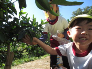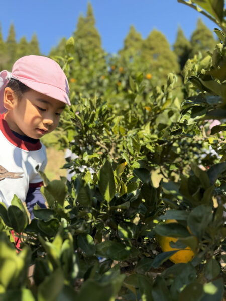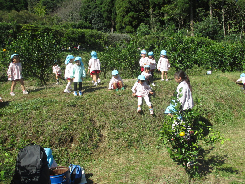 アルバム 11月園外保育(みかん狩り)☆彡in鬼塚望岳園 2026年1月7日 11月の園外保育は、西別府にある【鬼塚望岳園】さんにみかん狩りに行きました♪ 前日に雨が降りましたが、当日はきれいな青空になり、気持ちよくみかん狩りを楽しむことが出来ました。 丘の上にあるみかん畑目指して、一歩一歩頑張って登っていきました。 みんな真剣な表情でみかんを見つけると、「これだ!」とみかんの収穫を楽しんでいました☆彡 みかん狩りを楽しんだ後は、手作り弁当をおいしくいただきました♪ 坂を登ったり、遠くのお友だちにヤッホー!と声を掛けたりとっても楽しい園外保育になりました☆彡