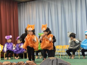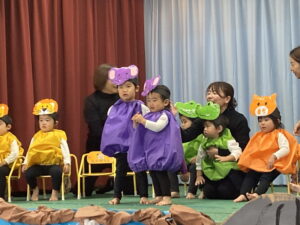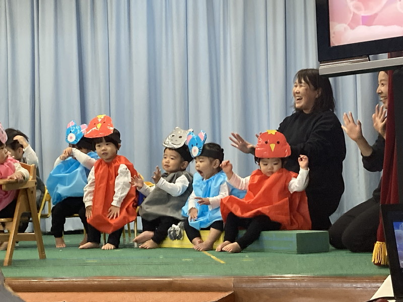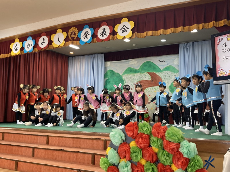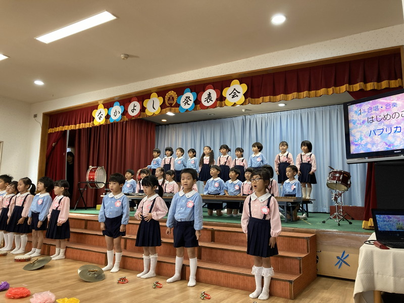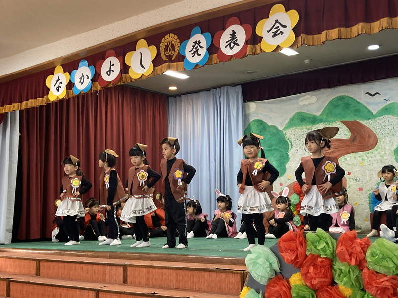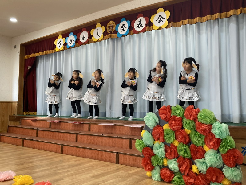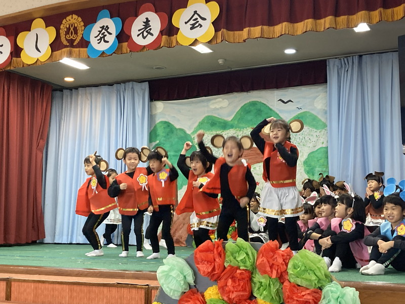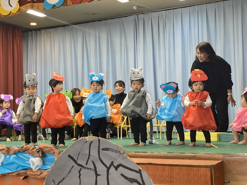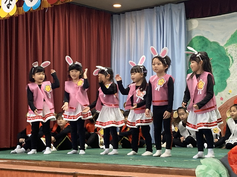 アルバム なかよし発表会☆彡(もも・さくら・うさぎ) 2026年1月7日 12月7日(日)はなかよし発表会を行いました☆彡 運動会が終わってから、一生懸命練習に取り組んできた成果を大好きな家族に見てもらう事ができた素敵な発表会になりました♪ 【うさぎ組】合唱・合奏「パプリカ」 オペレッタ「なかよし!おえかきクッキング」 【もも・さくら組】表現遊び「もりのおふろ」 みんな頑張っている姿がキラキラと輝いていました☆彡