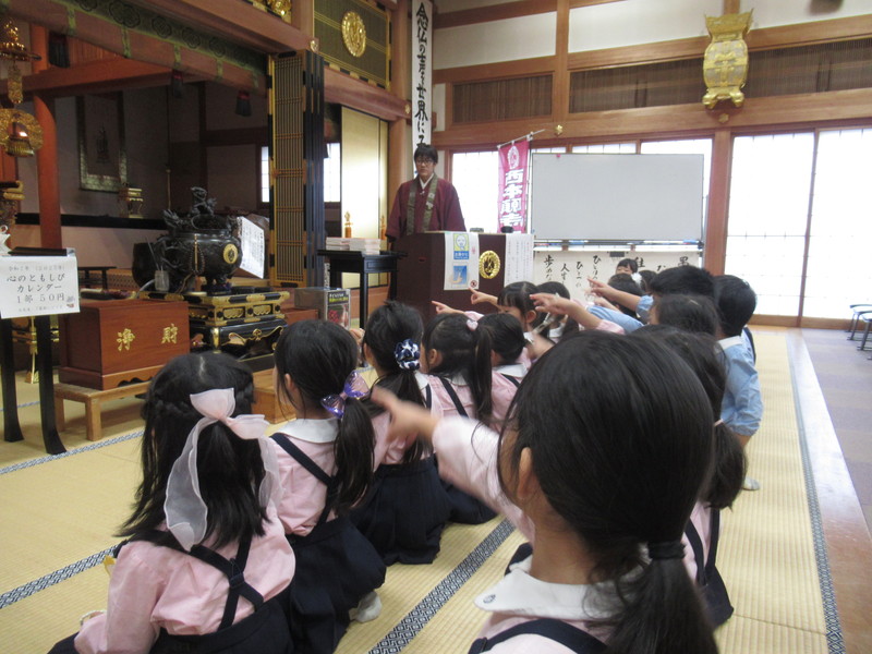 アルバム 11月ご命日参拝☆彡(きりん組) 2026年1月7日 11月17日(月)は、11月のご命日参拝で和岡出張所へきりん組が出掛けました 園を代表して張り切って出発したきりん組のお友だち! 本堂に入ってからもしっかりとした姿勢でお参りをし、話を聞くことができました♪ 年長組のお友だちも、普段は入ることのできないお内陣に入らせてもらえて大喜びでした。 これからも、み仏様や先生・家族のお話をよく聞いて心の優しいお友だちになっていってほしいと思います☆彡